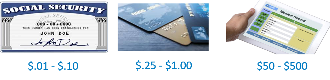 While estimates over the current value of different record types vary from source to source, one thing is clear, health records are the most valuable type of record on the black market. Not only do they contain the information needed to create false identities, health records also contain the even more valuable health insurance number that can be used to commit insurance fraud and drive significantly more ill-gotten gains than a credit card scheme.